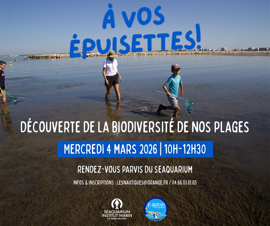 À l’occasion de la 32e édition du salon Les Nautiques – Port Camargue, les médiatrices du Seaquarium Institut Marin, Cannelle et Camille, vous proposent de partir à la découverte de la biodiversité de nos plages et de nos herbiers.