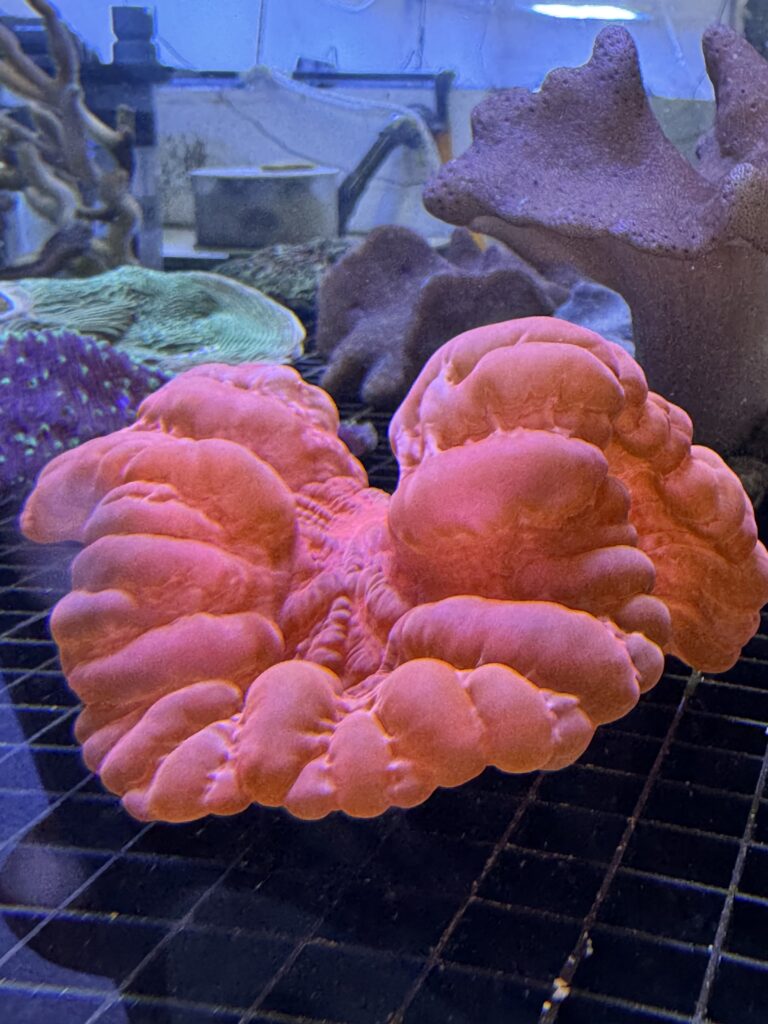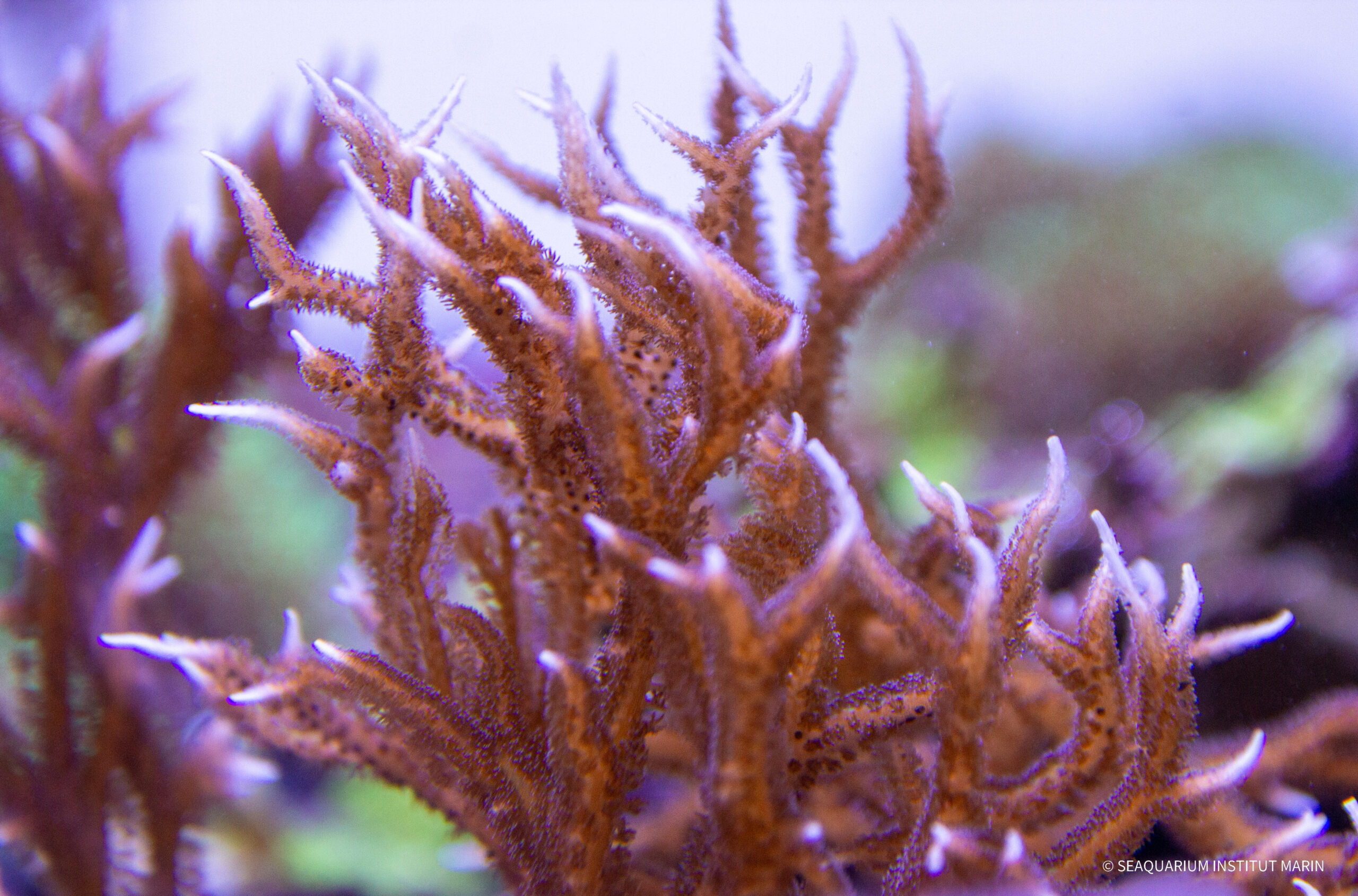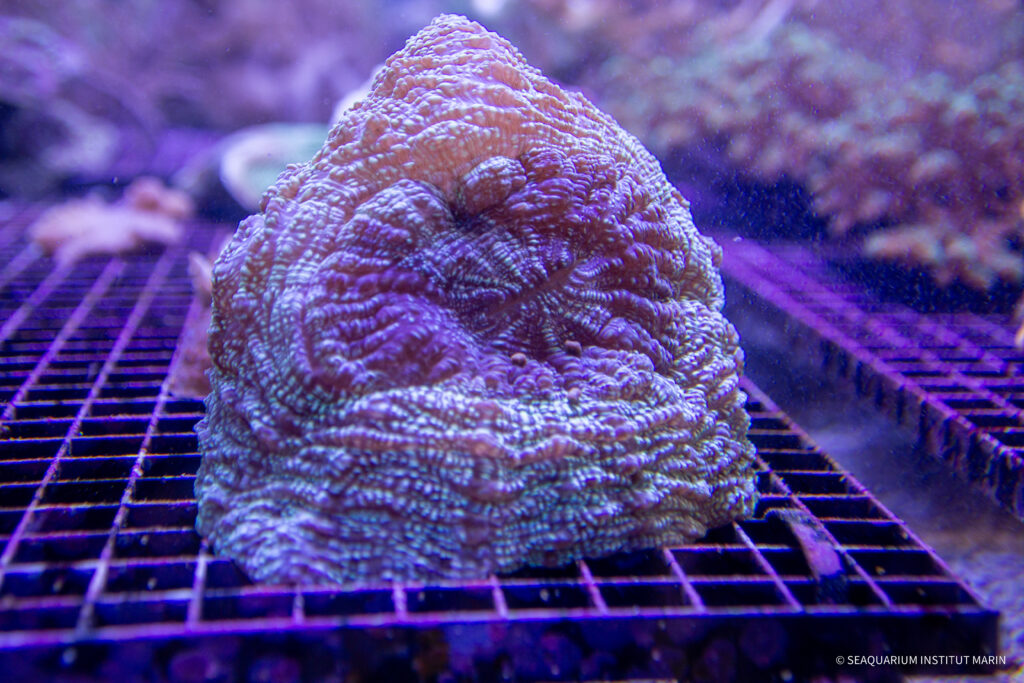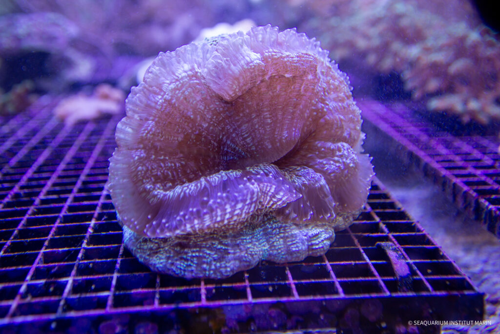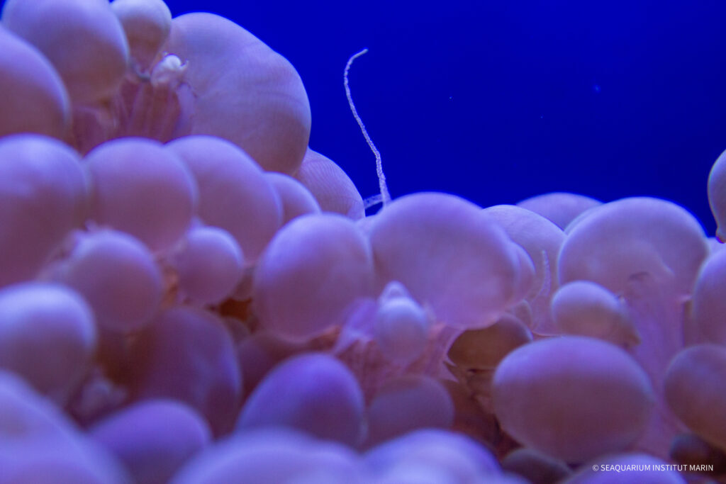 Ces tentacules capturent les particules en suspension, les dirigent vers leur bouche, et permettent au corail de se nourrir activement. Un moment où il est nécessaire de s’approcher de la vitre pour voir l’activité biologique.