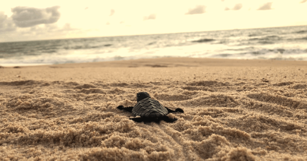 Chez les tortues marines, comme la tortue caouanne (Caretta caretta), les jeunes passent par une phase pélagique en pleine mer, durant laquelle ils se nourrissent et grandissent pendant plusieurs années. Après 15 à 30 ans, les femelles reviennent sur leur plage natale pour pondre leurs œufs, parfois à quelques mètres seulement de l’endroit où elles sont nées.