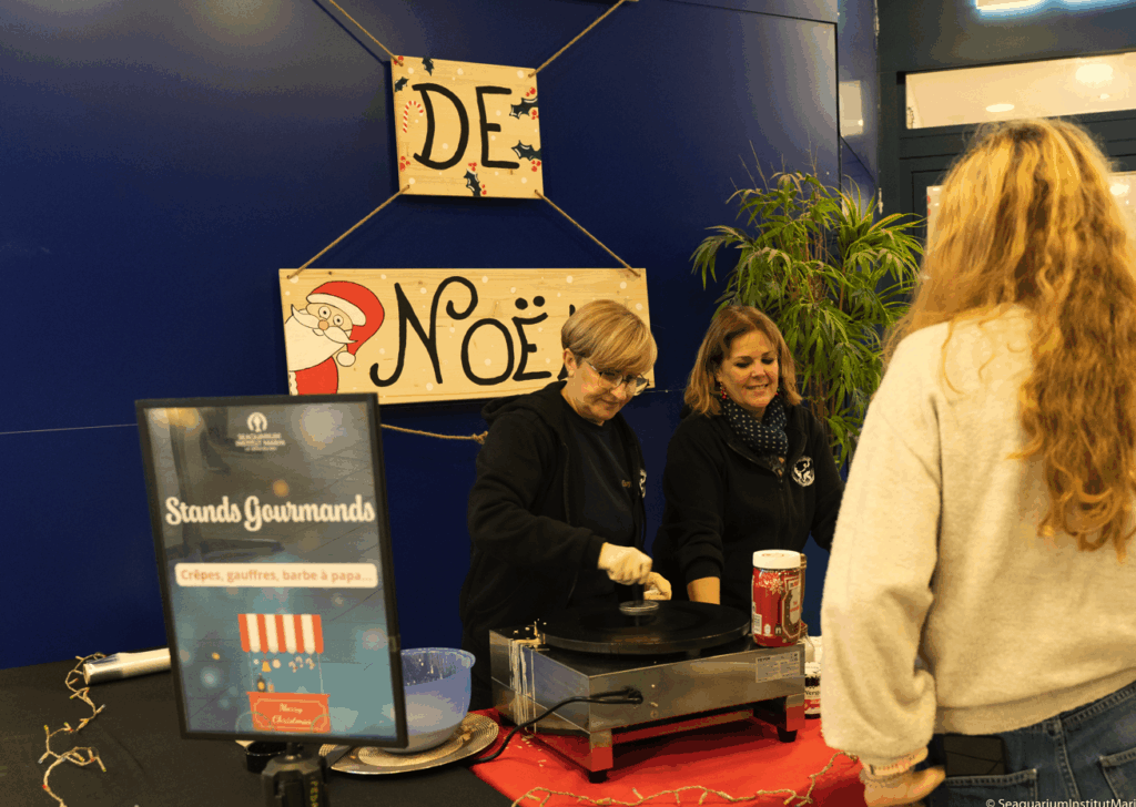Dans le hall du Seaquarium, un espace gourmand proposera gaufres, crêpes et chocolat chaud.