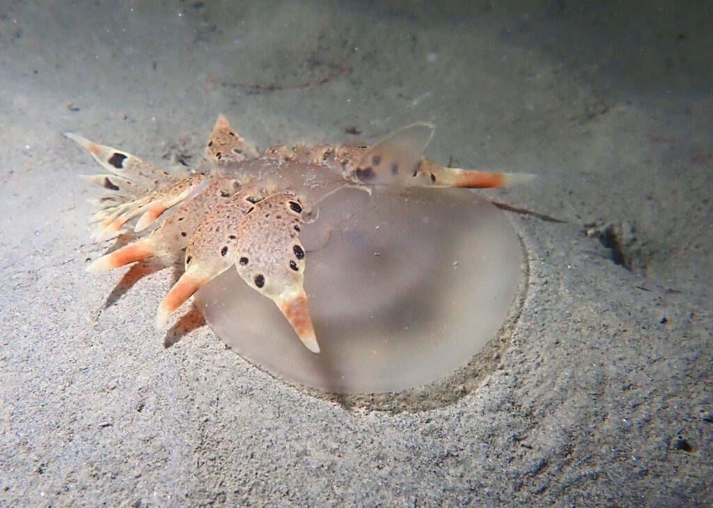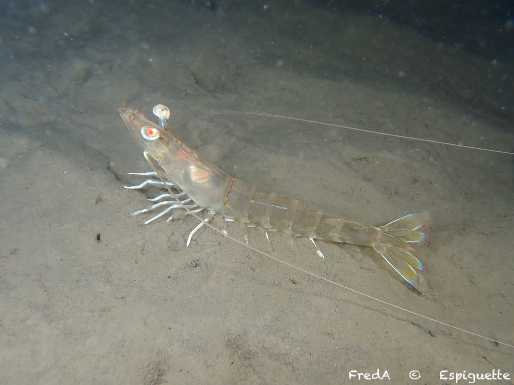Les plongeurs ont également recensé des invertébrés caractéristiques de la saison : crevettes caramotes (Penaeus kerathurus), Natice porte-chaîne (Euspira catena), révélant une activité benthique soutenue malgré les températures basses.