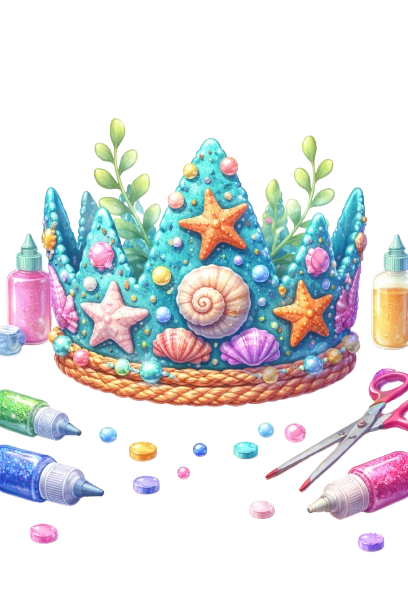 Les enfants créent leur couronne de reine ou de roi des mers et des océans.