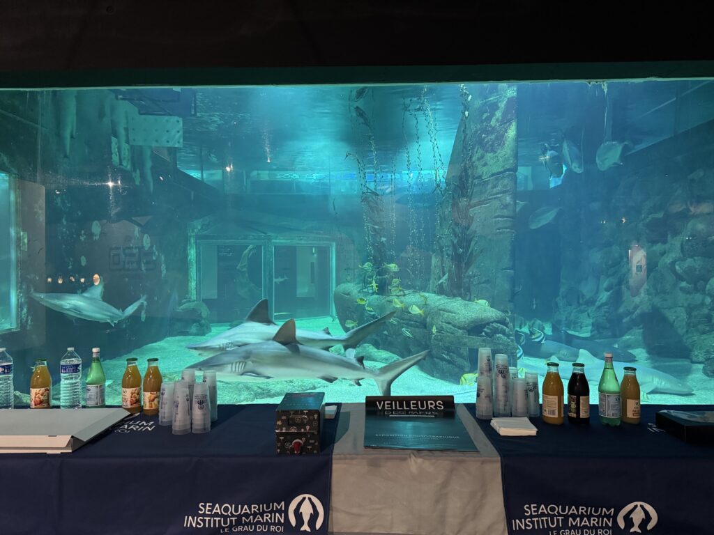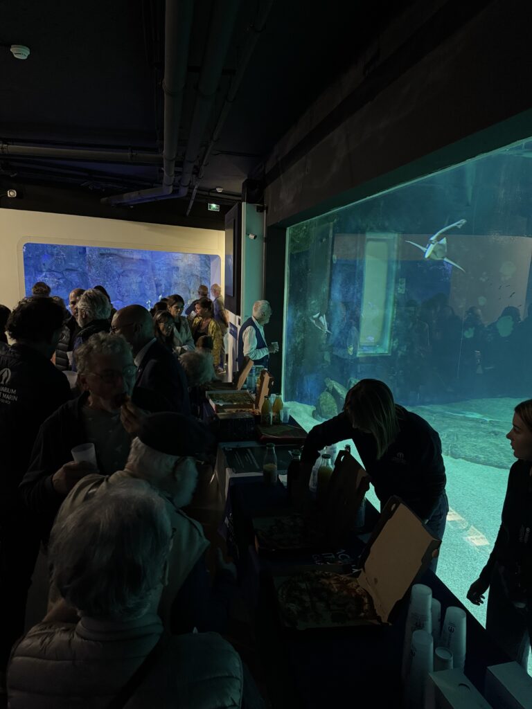 La soirée s’est conclue dans une ambiance conviviale autour d’un verre de l’amitié, favorisant les échanges entre plongeurs, curieux, scientifiques et passionnés de mer devant la grande vitre du requinarium.