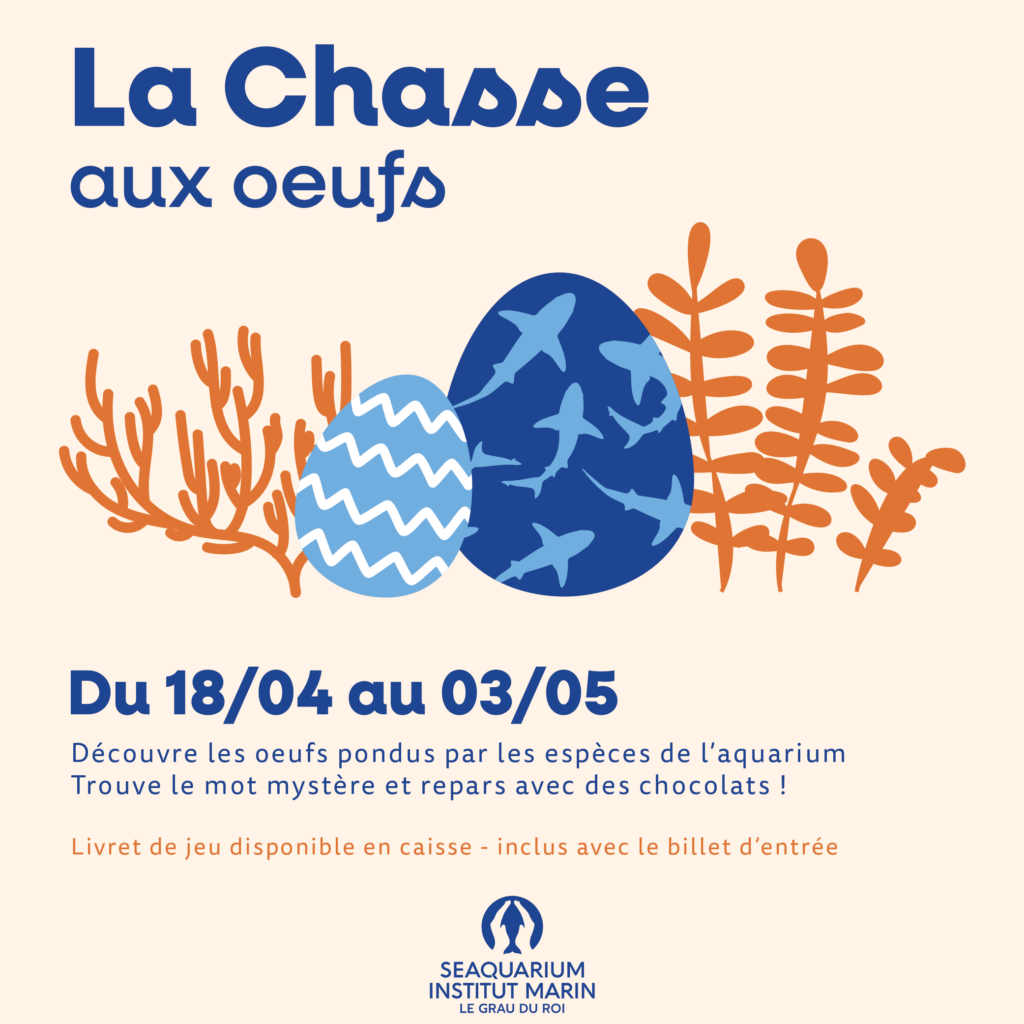 Oubliez les jardins ! Ici, les œufs se cachent près des bassins. Munis de votre livret (disponible à l’accueil), retrouvez les œufs de requins, raies ou gastéropodes dissimulés dans le parcours. Identifiez les espèces, récoltez les indices et décodez le mot magique pour gagner une surprise chocolatée à la boutique !